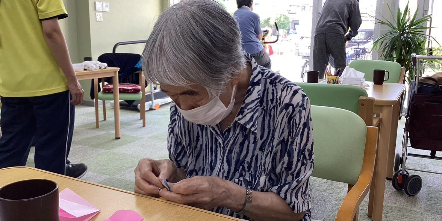 手順に沿って作業をしていても途中で「あれれ?」と分からなくなってしまうこともありますが、隣の方に聞きながら進めていったり、折り紙をきっかけに仲良くなることができます。